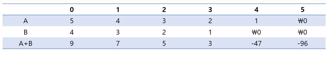 여기서 한 가지 문제가 발생하는데, A와 B 중 null이 있으면 sum값은 음수가 된다.