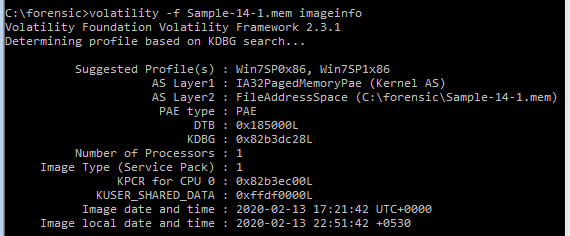 `imageinfo` 명령으로 시스템 정보를 획득할 수 있다. 여기서 얻은 Profile을 이용해 다음 분석을 진행한다.