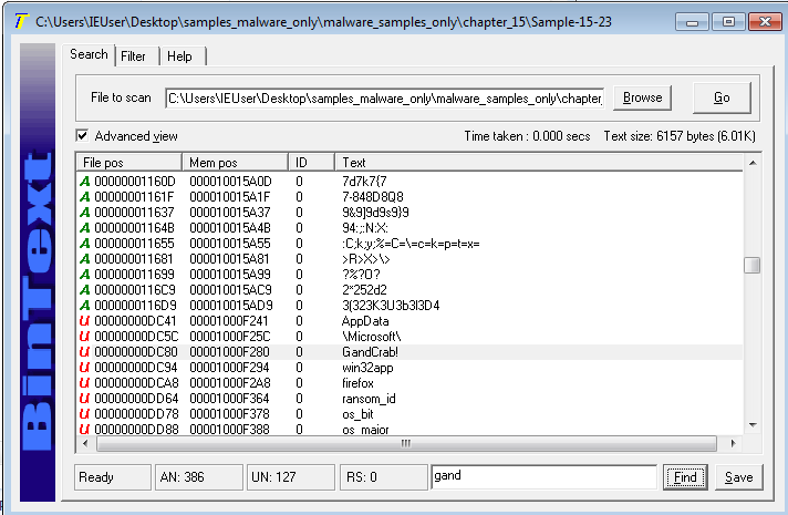 GandCrab 패밀리라면 이름을 문자열에 포함하고 있다.