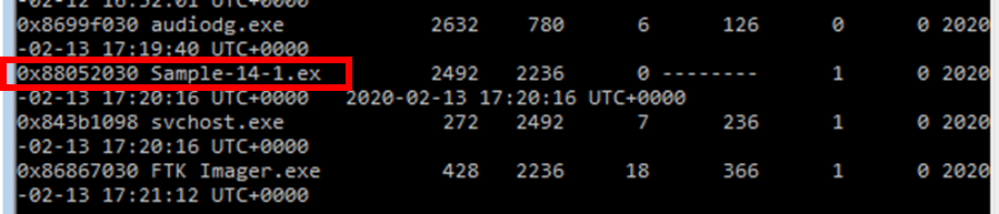 이 메모리 덤프에서 Sample-14-1.ex를 실행했다는 사실을 알 수 있다.